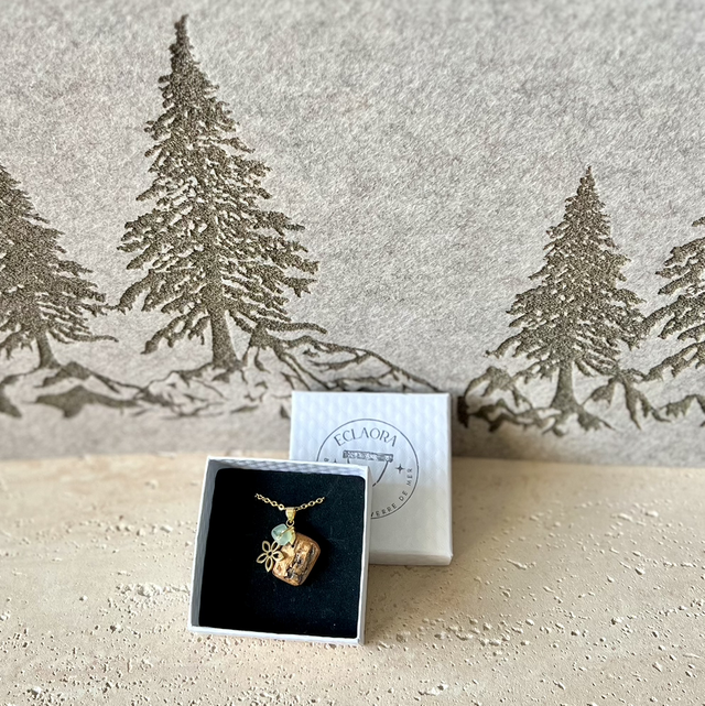 L’olivier, symbole de Paix, s’unit à la fleur, emblème d'Épanouissement. Le verre marin y ajoute une note de Résilience. Ce bijou favorise un Ancrage serein et la croissance personnelle : une invitation à « oser briller » avec douceur.